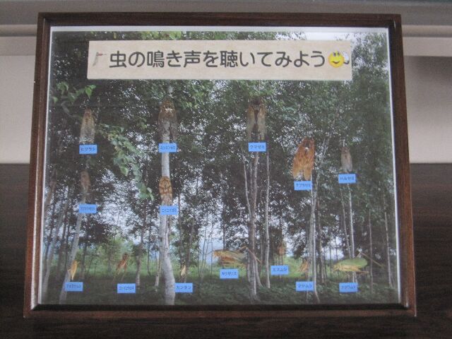 | 山口県内の身近な昆虫や世界の珍しい昆虫の標本を集めました。 | セミやバッタの鳴き声を再生して聞くことができる標本です。 | 簡易な双眼実体顕微鏡です。昆虫の体の各部等を拡大して観察できます。 |